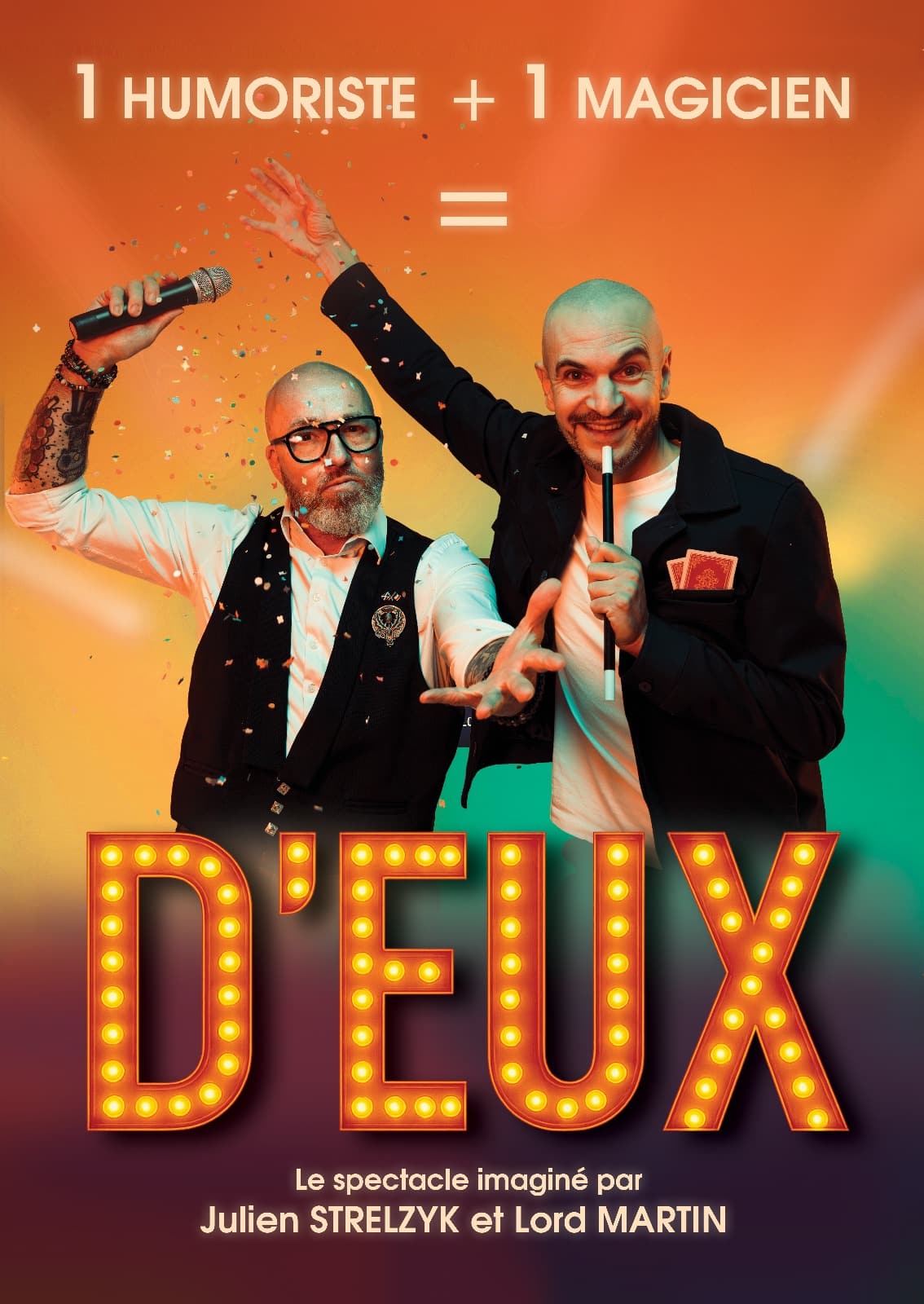 Accueil / Programmation / Julien Strelzyk et Lord Martin – D’EUX Julien Strelzyk et Lord Martin – D’EUX Le 04 avril 2026 à 20:00 Réserver mon billet ↓ J'achète mes places Julien Strelzyk et Lord Martin – D’EUX Suivez Julien Strelzyk et Lord Martin – D’EUX Sur scène J'achète mes places: Billetterie Weezevent Voir toute la programmation